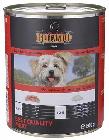 Niemiecka firma Belcando produkuje pięć rodzajów konserw mięsnych dla psów wszystkich ras. Według producenta stanowią 98,8% mięsa i jest to priorytet przy wyborze mokrej karmy.W składzie tak naprawdę nie ma nic zbędnego, a dodatkowe składniki zależą od wybranego smaku. Jednocześnie kupujący potwierdzają jakość produktu i zwracają uwagę na gęstą konsystencję i przyjemny zapach. Nie ma tu nic sztucznego: żadnych dodatków, konserwantów czy barwników. Jedynymi zarzutami są to, że konserwy są trudno dostępne w sklepach zoologicznych, a opakowanie może być trudne do otwarcia ze względu na słaby klucz.