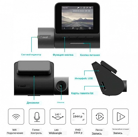 Este modelo é o mais avançado da linha Xiaomi. Ele foi equipado com uma tela de 2 polegadas, uma matriz Sony IMX335 de 5 megapixels, uma lente rápida, o melhor microfone e um processador Hi3556 de 2 núcleos. Mas eles decidiram não se preocupar muito com o design, eles o espiaram no carro-chefe coreano Thinkware F800. Mas isso é apenas aparência. O 70mai Cam Pro suporta tecnologia de codificação que pode melhorar a eficiência da compactação de vídeo. O gravador de vídeo dá uma imagem de boa qualidade. A tela não é touch. A função de controle de voz está disponível, fixação automática quando o movimento é detectado, há um sensor G. Mas não há módulo GPS embutido. No entanto, pode ser adquirido separadamente no AliExpress.