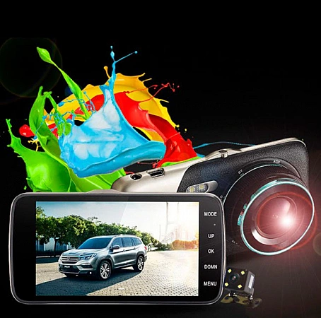 Este modelo de orçamento funciona em modo de gravação em loop, existe um G-SENSOR que permite salvar o vídeo durante um acidente. A segunda câmera é remota, instalada na cabine ou fora do carro. Não está incluído na configuração básica, você terá que pagar extra. Com ele, o aparelho funciona corretamente como câmera de estacionamento com visão traseira. E o mais importante - a qualidade da imagem. Curiosamente, é aceitável, mas ainda fica aquém dos parâmetros declarados. Mas a tela é realmente grande e brilhante, conforme indicado na descrição. O ângulo de visão é suficiente na maioria dos casos. O menu de configurações é simples e claro. Em geral, um bom DVR, mas recentemente a qualidade dos produtos se deteriorou, como escrevem nos comentários do Aliexpress.