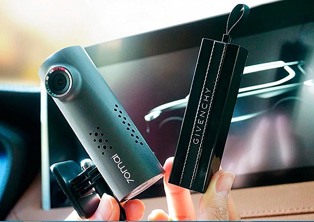 O gadget se distingue por seu tamanho compacto, preço humano e um impressionante conjunto de recursos. O dispositivo está equipado com um braço giratório para ajustar a inclinação da câmera e o botão liga/desliga iluminado. Controlado via aplicativo para smartphone. Mas o melhor que o gravador tem é uma lente de alta qualidade que grava vídeo com ângulo de captura de 130 graus, além de um sensor que permite receber vídeo no formato 1080p. Existe até orientação por voz, como DVRs caros. O gadget é pequeno, facilmente escondido atrás de um espelho. É fixado no vidro com a ajuda de uma plataforma. O produto recebeu milhares de elogios no Aliexpress. É uma pena que não funcione para removê-lo e instalá-lo com um movimento da mão.