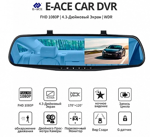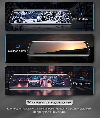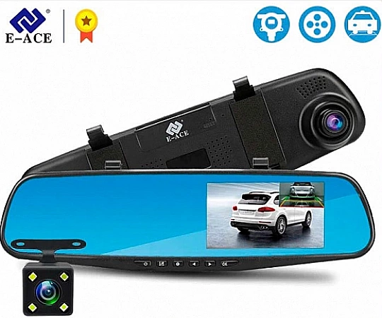DVR disfarçado de espelho retrovisor. Nas revisões, os compradores escrevem que o modelo corresponde às características declaradas. A qualidade da imagem é decente, os números são fáceis de ler. A vantagem também é um grande ângulo de visão, que permite capturar o que está acontecendo de todos os lados. Está equipado com um DVR e um detector de movimento, graças ao qual a gravação é ativada automaticamente se alguém bater no carro ou tentar abri-lo no estacionamento. Além disso, a qualidade do disparo é aprimorada pela presença de um modo noturno, proteção contra vibração e balanço de branco automático. A única coisa é que às vezes o espelho vem quebrado. É verdade que isso raramente acontece, pois a embalagem é de alta qualidade.
