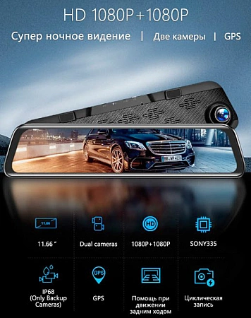 Um gravador simples sem GPS e recursos inteligentes adicionais que fazem um bom trabalho ao capturar a situação ao mar. A tela está localizada no lado direito do espelho e possui uma diagonal de 4,3 polegadas. O gerenciamento é realizado usando um conjunto de botões sob o espelho. O dispositivo suporta uma segunda câmera (opcional). A câmera adicional é à prova d'água e pode ser instalada no exterior. O chipset permite gravar simultaneamente de duas câmeras para arquivos separados. Todos os fixadores necessários estão incluídos no kit. Os comentários escrevem que a qualidade de gravação não chega a Full HD, há interpolação, há falhas de software - o que vale o peso de um vídeo de 2 minutos cerca de 400 MB.