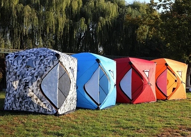 WEIDO FISH é um modelo de orçamento extra, disponível em dois tamanhos. Há apenas uma cor à venda - camuflagem discreta, graças à qual o produto não se destacará no fundo das paisagens de inverno. Os comentários dizem que a barraca é espaçosa e confortável. O vendedor embala o item com segurança e o envia rapidamente.O kit tem tudo o que você precisa, às vezes os compradores recebem brindes adicionais pelo pedido. A qualidade corresponde ao preço: há costuras tortas, mas em geral o material é bom, a estrutura é forte. A barraca é montada de forma elementar, mas pode ser difícil desmontá-la antes de sair da pesca. Outra desvantagem é que durante a chuva forte, a água pode fluir pelas eclusas.