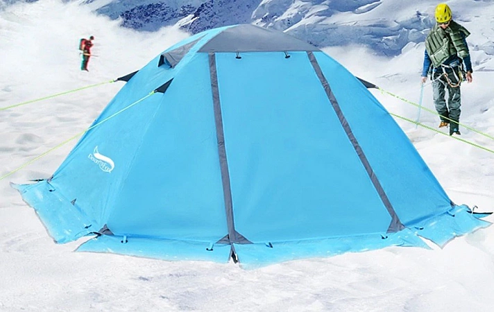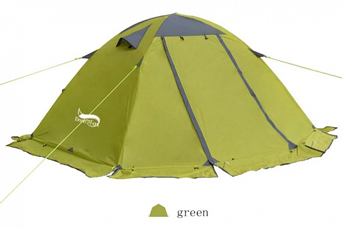 FLYTOP S-T33 é uma das tendas de duas camadas de meia estação. O vendedor afirma que este modelo resistirá a qualquer mudança de temperatura, existe até uma saia especial para a neve. AliExpress tem três cores brilhantes para escolher, você pode encomendar o produto para 2 ou 3 pessoas. O quadro é feito de alumínio de aviação, não tem medo de mudanças de temperatura e precipitação. Outra característica do modelo foi a presença de um dossel para proteção e ventilação. Sua altura é ajustável com cordas e pinos. Os compradores notam que a barraca é montada em apenas 5 minutos, todos os detalhes são feitos com alta qualidade. As desvantagens incluem fios salientes e um piso fino. Se você colocar um bom tapete dentro, não haverá desconforto.