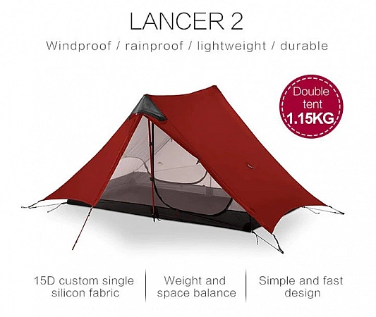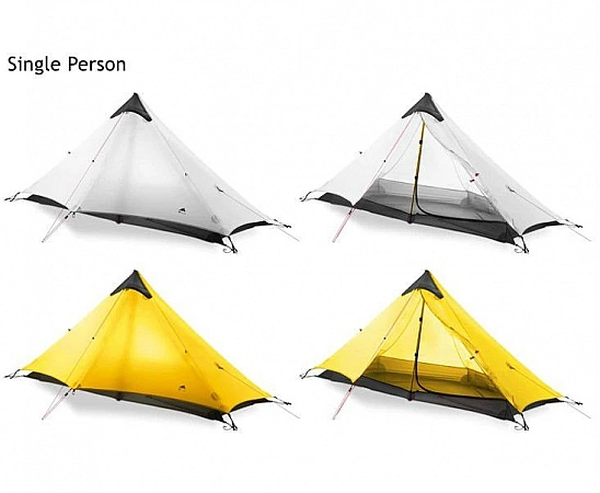 Não há dúvida sobre a qualidade do 3F UL GEAR LanShan, porque é popular muito além do AliExpress. Esta tenda ultra-leve foi concebida para 4 estações, é composta por duas camadas (dossel e rede mosquiteira). Não há estrutura como tal; dois bastões de trekking são usados para instalação. Todas as conexões são reforçadas para que a estrutura permaneça estável mesmo com ventos fortes. Praticamente não há reclamações sobre este modelo nas análises: respirabilidade e proteção contra a água estão presentes, a qualidade dos materiais está próxima do ideal, os raios se movem rapidamente. Com manuseio cuidadoso, o produto servirá por muito tempo. A principal desvantagem é que a barraca quase não é soprada, no verão estará um pouco quente nela.