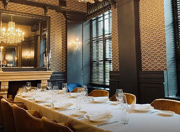 Um restaurante com um interior feito no estilo de um pub inglês. Sim, não é simples, mas baseado na série de gângsteres Peaky Blinders.