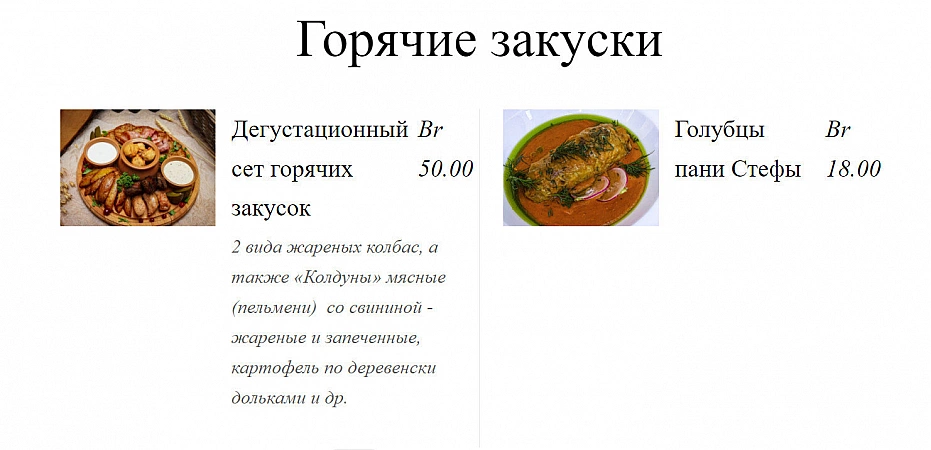 Um dos restaurantes mais baratos com cozinha nacional em Minsk. Os preços aqui são baixos, mas também há comida cara, mas as porções na instituição são bem impressionantes. O menu principal é composto por pratos bielorrussos e europeus, também há bons vinhos, cerveja e licores de marca. O salão é bastante grande, além disso, existem salas separadas para fumantes e não fumantes. Nos fins de semana e feriados, a instituição recebe apresentações ao vivo e, nos dias de semana, música ambiente tranquila. A qualidade dos produtos e pratos do restaurante, a julgar pelos comentários, é alta: a comida é farta, as porções são enormes. No entanto, o mesmo não pode ser dito sobre a qualidade do serviço. Às vezes, os garçons dão ordens por muito tempo, são rudes e se comportam de maneira pouco profissional. Daí a baixa avaliação dos hóspedes.