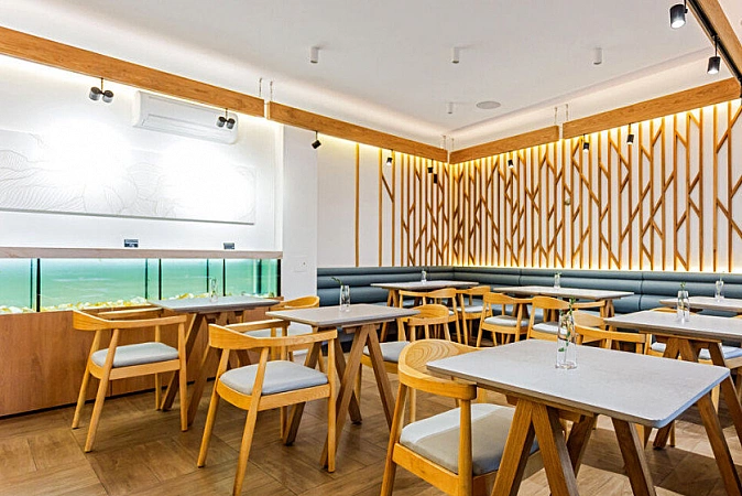 Uma verdadeira jóia entre os restaurantes asiáticos no centro de Minsk. Este não bistrô serve pratos muito saborosos da culinária nacional japonesa, você também pode encontrar outras comidas asiáticas, bebidas alcoólicas e não alcoólicas no cardápio. Muitos hóspedes do restaurante o consideram o melhor da cidade. Afinal, aqui um interior bonito, mas ao mesmo tempo modesto, é combinado com preços razoáveis e serviço rápido. Não há música ao vivo na instituição, mas composições casuais de fundo são constantemente tocadas. O restaurante tem 2 salões pequenos: um com mesas e aquários, outro com bar e cozinha aberta. O café também tem comida para viagem.O pedido pode ser feito e entregue em sua casa através de um serviço de correio. Os pratos da instituição são relativamente baratos, mas a conta é impressionante para uma grande empresa. Além disso, alguns reclamam do limite de tempo para todos os clientes: apenas 2 horas por mesa para refeições.