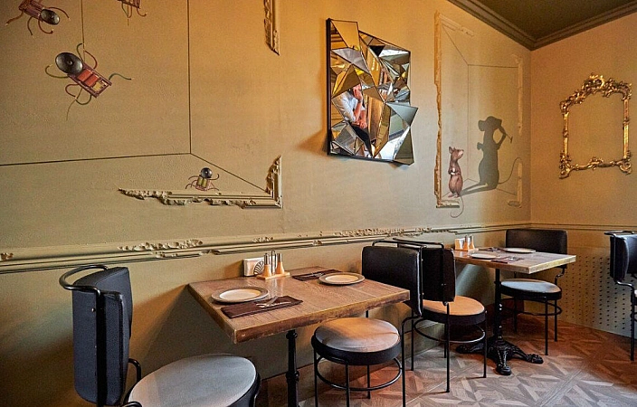 Restaurante com um interior clássico e uma vasta seleção de vinhos de qualidade. O estabelecimento está localizado quase no centro, está aberto diariamente.Há um terraço de verão, uma sala bistrô separada com um bar onde você pode fumar, uma área para não fumantes e um pequeno salão de banquetes para 12 pessoas. Mas a música ao vivo na instituição raramente toca, mas a maioria dos convidados também está satisfeita com as apresentações do DJ. A ementa do restaurante contém apenas pratos europeus, aqui a cozinha de autor prevalece sobre a nacional. Daí os preços bastante altos: é difícil nomear comida barata neste café. Quanto à qualidade e sabor dos pratos, as opiniões dos convidados se dividiram. Alguns visitantes não tiveram sorte e entraram no turno de um chef inexperiente, cuja comida sai 3-4 plus. A outra parte dos convidados elogia as sobremesas, pratos quentes e petiscos do chef.