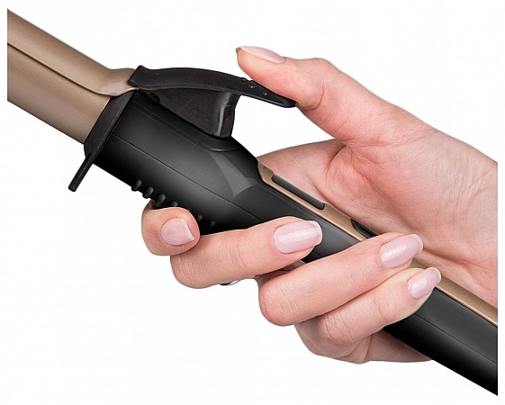 A presença de um retentor é uma raridade para placas cônicas. O Philips BHB871 possui um clipe de fio como os modelos convencionais. Isso torna a ondulação mais confortável, especialmente para cabelos curtos.