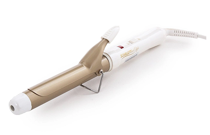 Scarlett SC-HS60596 é ideal para cabelos de comprimento médio. A principal desvantagem é a falta de controle de temperatura. Apesar do baixo custo, há proteção contra superaquecimento, função de ionização, rotação do cabo e indicador de potência. O revestimento do elemento de aquecimento com um diâmetro de 25 mm é feito de cerâmica, portanto, é adequado para cabelos naturais e tingidos. A principal vantagem das pinças é sua bela aparência e cor branca, que muitas meninas gostam tanto. O preço é mais do que agradável, o que os usuários também observam entre as vantagens inegáveis. O modelador de cachos lida perfeitamente com sua função, aquece rapidamente e enrola os cachos lindamente. Infelizmente, neste modelo, a temperatura só pode ser ajustada para 200ºС.