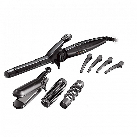 O modelador multifuncional Babyliss Pro BAB2225ТTE é a melhor escolha para alisamento de cabelo impecável e criação de cachos luxuosos. O inovador revestimento de titânio-turmalina com Sol-Gel aumenta a durabilidade do aparelho, distribui uniformemente o calor sobre a superfície das placas e proporciona um efeito mais suave nos cachos. Modos de temperatura disponíveis - 170, 200 e 230 ° C, para conveniência do usuário, são exibidos por indicadores no display. Mas o modelo também tem várias desvantagens. Em primeiro lugar, as placas de engomar não se encaixam muito bem. Em segundo lugar, ela tem um kit modesto para um modelador de cachos profissional. Em terceiro lugar, os usuários reclamam que o cabelo às vezes fica preso nos prendedores.