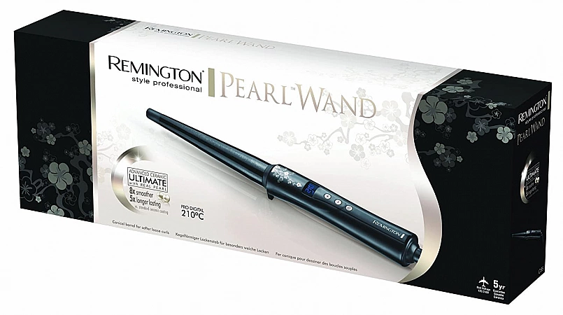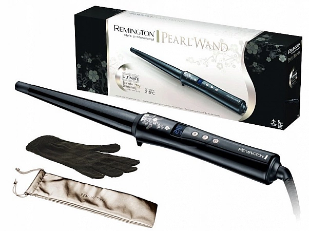 O ferro de ondulação cônico Cl95 Pearl Wand da Remington aquece em apenas 30 segundos para criar rapidamente cachos bonitos e saltitantes. As placas revestidas de cerâmica aumentam a durabilidade do ferro de frisar e proporcionam um deslizamento mais suave. Juntamente com pinças, seus cachos não ficarão juntos e ficarão eletrificados. O ferro de frisar Cl95 Pearl Wand é muito leve, compacto e confortável de usar. A faixa de temperatura é de 130 ºС a 210 °C, o controle eletrônico permite definir rapidamente o valor desejado. Existe uma função de desligamento automático que funciona após uma hora. No entanto, tenha cuidado em altas temperaturas. Eles podem queimar o cabelo fino. E para a segurança de suas mãos, não deixe de usar uma luva térmica.
