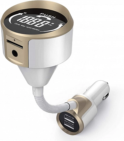 Um dos transmissores FM mais compactos para um carro em nosso topo. De lado, lembra uma lâmpada em miniatura e tem um ângulo de ajuste de 270 graus. Compatível com marcas como Apple, Samsung, Huawei Xiaomi, Oppo, Sony, etc. As chamadas podem ser atendidas com o toque de uma mão. Separadamente, enfatizamos a presença de um voltímetro para monitorar a estabilidade da tensão da bateria do carro. O sistema de carregamento inteligente garante uma transferência de corrente estável mesmo durante os jogos, permitindo que seus filhos brinquem enquanto viajam. A faixa de tensão ideal para o dispositivo é de 12,8 a 12,2 volts. Se o seu valor estiver fora do intervalo recomendado, você precisa tomar cuidado para substituir a bateria. As informações sobre a frequência do sinal são exibidas na parte superior do transmissor em um formato digital minimalista.