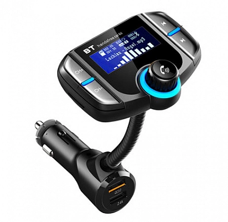 O melhor transmissor FM do carro, em nossa opinião, e a combinação de características. Uma característica única deste modelo é a busca automática de estações de rádio não utilizadas.3 portas USB com QC 3.0 carregam todos os dispositivos conectados sem esperar. A tela de 1,8 polegadas é uma das maiores do mercado, além disso, é colorida e muito nítida. O microfone embutido é muito alto e mostra-se no lado positivo ao dirigir pela cidade ou rodovia. Conecta e sincroniza facilmente com todos os dispositivos disponíveis no mundo. A parte superior da tela mostra informações breves sobre a frequência, volume, modo de ativação do bluetooth e modo de operação. A voltagem e as escadas da trilha de áudio são exibidas na parte inferior. Existem apenas 4 botões de controle. A chamada do telefone pode ser controlada usando o joystick. Vale ressaltar que o fornecimento deste módulo para a Rússia está associado a alguns problemas e provavelmente você terá que procurar um intermediário para enviá-lo.
