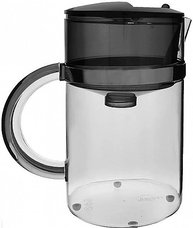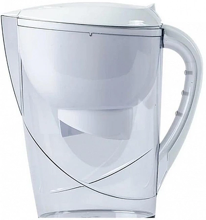 Um modelo bastante popular do jarro de filtro da marca Geyser. Difere em grande volume em 4 litros e conveniência de um desenho. A tampa possui um orifício especial para despejar a água, o que elimina a necessidade de remover constantemente a tampa. O jarro filtra a água de forma qualitativa e bastante rápida - até 400 ml por minuto. Depois de passar pelo cartucho, o líquido se livra do ferro, do cloro, amolece, adquire um sabor agradável. O jarro parece bom e sólido. O plástico parece fino para alguns compradores, mas isso geralmente não afeta a operação de forma alguma - com uso cuidadoso, o jarro durará muito tempo. Não há problemas com a compra de cartuchos de reposição.