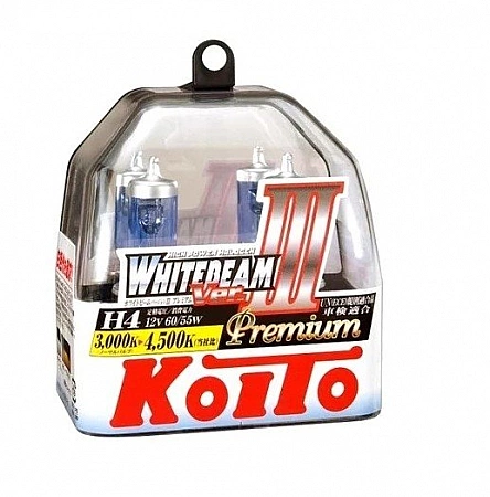 O fabricante japonês oferece uma lâmpada halógena H4, adequada tanto para o modelo Lada Granta quanto para uma ampla gama de carros de fabricantes estrangeiros. Esta é uma lâmpada bispiral na qual são implementados dois filamentos - com potência de 55 W para farol baixo e 60 W para farol alto. O fluxo luminoso no primeiro modo é de 1000 Lm, no segundo - 1650 Lm, o que é mais que suficiente para uma viagem ao entardecer, escuridão completa, bem como em condições climáticas adversas, como neve ou neblina matinal.A temperatura de cor da lâmpada está no nível de 4500K, então a luz dela tem uma cor quase branca. Não cega os olhos dos motoristas que passam, o que sem dúvida é uma vantagem. Entre as deficiências, pode-se notar que o fabricante não indica a vida útil da lâmpada, então só se pode adivinhar.