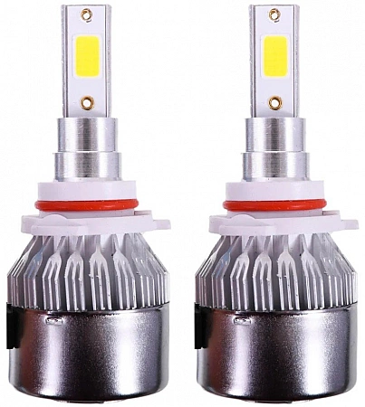 O kit inclui duas lâmpadas LED Super Headlight С9 com base HB3 para instalação nos faróis de carros russos e estrangeiros. O modelo é uma espécie de desenvolvimento das lendárias lâmpadas C6 / C6. Os LEDs dentro de cada lâmpada são instalados da mesma forma que o filamento incandescente está localizado nos elementos de halogênio. Devido a isso, uma linha de corte quase perfeita é criada, a luz parece natural e não cega os motoristas dos carros que se aproximam. Não há problemas com o brilho e a potência do fluxo luminoso - até 3000 lm com um consumo de 36 watts. A temperatura de cor de 6000K confere à luz um tom azulado e o alto brilho garante excelente visibilidade mesmo em condições extremas. O que os compradores realmente não gostam são os problemas de instalação em alguns carros russos.