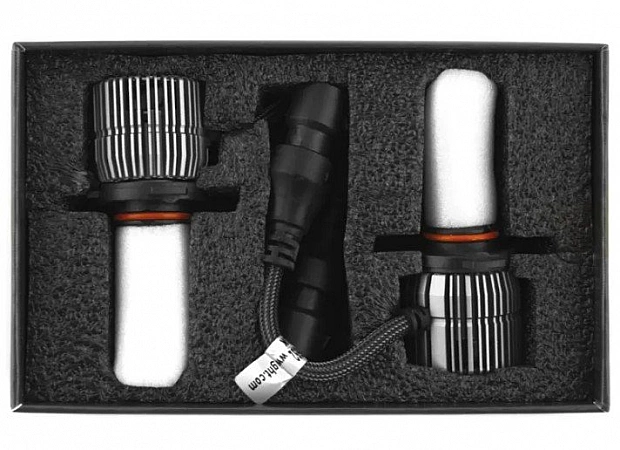 O kit inclui duas lâmpadas LED com a linha de corte correta, para que a luz não incida na pista contrária e proteja os motoristas dos carros que se aproximam do ofuscamento. Para radiação, são utilizados chips comprovados Seoul CSP 2121 fabricados na Coréia do Sul, cuja vida útil excede 30 mil horas. Os LEDs emitem luz branca com uma temperatura de cor de 5500K que é confortável para os olhos. Com um fluxo luminoso de 4000 lm por conjunto, o consumo de uma lâmpada é de apenas 25 W, por isso pode ser chamado com segurança de economia de energia. Cada carcaça da lâmpada tem um termostato que substitui um radiador de resfriamento volumoso. Isso torna os elementos compactos e simplifica sua instalação nos faróis dos carros de passeio. Quanto às deficiências, isso pode ser atribuído ao custo bastante alto do kit sem desconto.