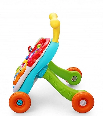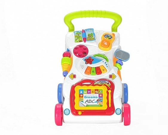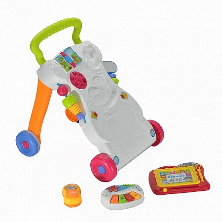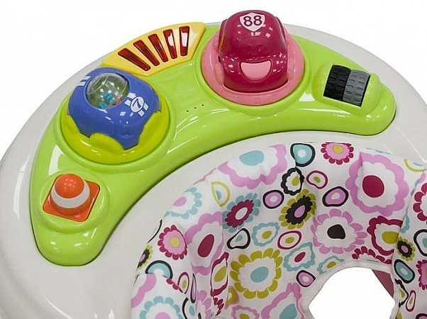 Everflo First Steps est un centre de jeu en fauteuil roulant conçu pour apprendre à votre enfant à marcher de manière autonome et à développer sa motricité fine. Intégrée au trotteur et alimentée par des piles, la barre de jeu propose une variété de jouets divertissants et éducatifs pour les bébés à partir de neuf mois. Il comprend une bande sonore, un téléphone, un miroir, un livre et bien plus encore. L'Everflo First Steps est équipé d'une poignée à hauteur d'enfant pour le pousser vers l'avant.Dans les avis, les acheteurs notent qu'il est facile pour les enfants de se déplacer à l'aide de ces marchettes, car ils sont de petite taille et de poids. Mais cela réduit parfois la stabilité de la structure et conduit à son renversement. Le modèle est courant dans les magasins d'articles pour enfants et est très demandé.