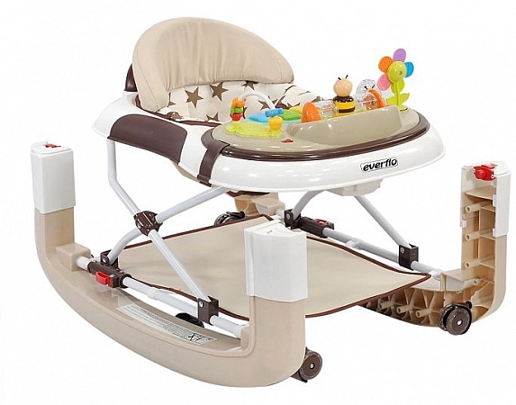 Everflo Glade WT711 est un modèle 3 en 1 qui peut être utilisé comme marcheur, sauteur et bascule. Il est équipé de six roues en silicone et la hauteur du siège peut être réglée sur trois positions différentes. La console de jeu fournit des effets sonores et lumineux et aidera également le bébé à développer son attention, sa mémoire et sa motricité fine. Dans les critiques, les parents notent que les marcheurs Everflo Glade offrent une audition agréable et un son pas trop fort, ce qui les distingue des analogues. Parmi les lacunes, les utilisateurs notent des difficultés à faire passer les déambulateurs en position de bascule.