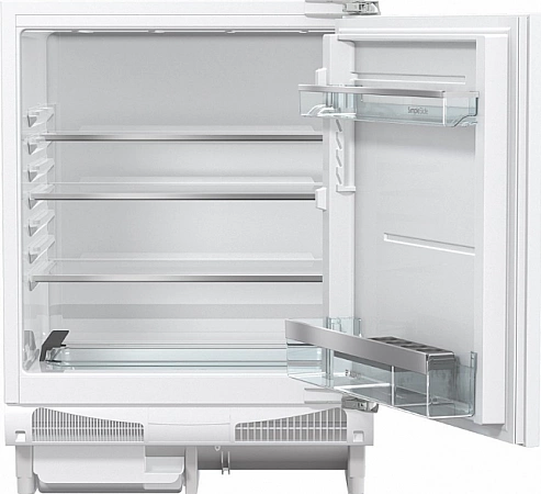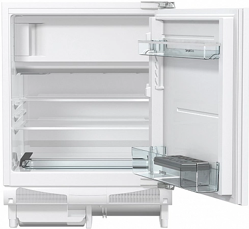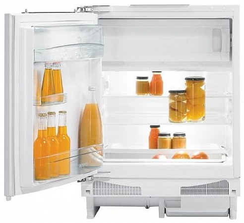 Avec des dimensions très modestes (59,6x82x54,5 cm), permettant d'encastrer l'appareil sous le plan de travail, comptoir ou comptoir de bar, les Slovènes ont réussi à l'équiper d'un congélateur. Le volume de la chambre de réfrigération est de 105 litres et le congélateur n'est que de 21 litres, mais même dans un si petit, jusqu'à 15 kg de nourriture peuvent facilement tenir. L'espace intérieur est organisé à l'aide de deux étagères en verre, d'une palette en plastique et de grands plateaux de porte. En cas de panne de courant inattendue, un tel mini-réfrigérateur pourra garder le froid à l'intérieur jusqu'à une demi-journée. Certains utilisateurs règlent la température interne avec un bouton de thermostat mécanique et utilisent ce modèle comme minibar pour stocker des collations, des boissons, des légumes et des fruits frais.