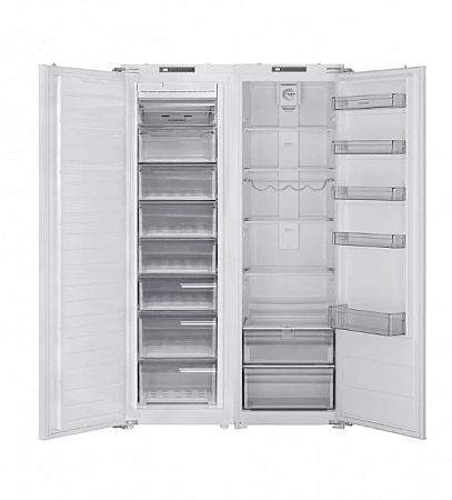 Ce modèle est assez simple en termes de caractéristiques, mais compte tenu du design (embarqué, côte à côte), son coût est minime et il serait déraisonnable d'exiger quelque chose de plus pour ce montant. Ainsi, pour un prix légèrement supérieur à 100 000 roubles, nous avons un réfrigérateur électromécanique spacieux avec un congélateur, un réfrigérateur et deux zones de fraîcheur.Son niveau sonore est minimal pour deux compresseurs - seulement 41 dB, le congélateur est dégivré par No Frost, la technologie goutte à goutte est sélectionnée pour la réfrigération. Avec les dimensions énormes du réfrigérateur, la consommation d'électricité n'est que de 441 kWh / an (classe A +). Toutes les fonctions nécessaires sont présentes - super-congélation, super-refroidissement, indication d'une porte ouverte, augmentation de la température. L'unité effectue son nom direct régulièrement et efficacement.