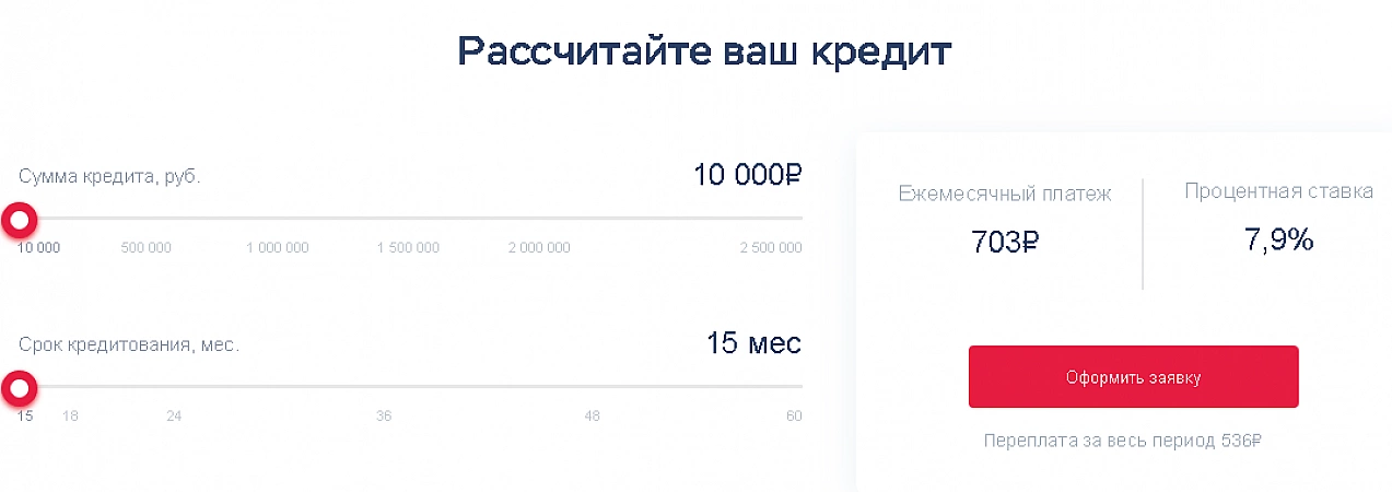 - Montant à partir de 10 000 roubles, pratique pour rembourser les petits prêts