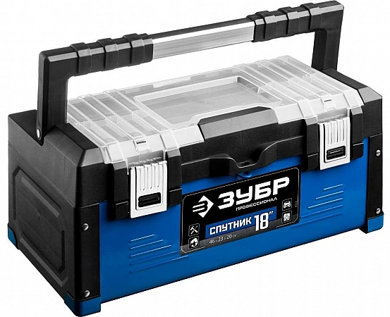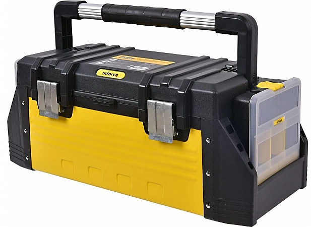 Le modèle est idéal pour les utilisateurs qui travaillent dans des conditions difficiles. La construction durable, renforcée de raidisseurs, n'a pas peur de l'effort physique. La poignée en métal avec inserts caoutchoutés offre une facilité de mouvement. Les concepteurs ont essayé d'utiliser chaque centimètre carré d'espace à bon escient - le paquet comprend deux organisateurs qui sont insérés dans des rainures spéciales situées sur les côtés de la boîte. Grâce à un revêtement de haute qualité, les serrures sont protégées de manière fiable contre la rouille. Les inconvénients relatifs incluent peut-être l'odeur âcre du plastique de la nouvelle boîte - elle ne disparaît qu'après quelques semaines.