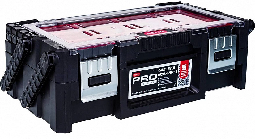 Une solution élégante pour les bricoleurs qui en ont assez des conteneurs de stockage d'outils standard. Le fabricant recommande d'utiliser le modèle pour les outils électriques, automobiles, de menuiserie ou de travail du métal. La base de la conception est un cadre en aluminium, qui offre une résistance mécanique et une excellente résistance à la corrosion. La coque du corps est en thermoplastique moulé résistant aux rayures. Pour un transport pratique, il y a une poignée télescopique rétractable avec un bouchon et de petites roues. Si vous aimez cette boîte, préparez-vous à de sérieuses dépenses - le coût du modèle est comparable à celui des produits des grandes marques. Tout le monde n'est pas prêt à payer ce genre d'argent pour un système de stockage fabriqué à Taiwan.