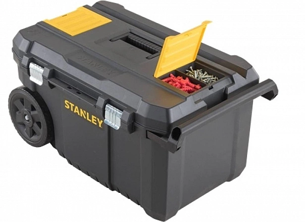 Si vous avez besoin de ranger et de déplacer régulièrement un grand nombre d'outils, alors le chariot en plastique Stanley est la meilleure solution. Le volume interne de la boîte est de 50 litres - il convient à la fois aux outils électriques et aux autres accessoires nécessaires au travail. Des roues robustes et une poignée confortable facilitent le déplacement avec peu d'effort. Des serrures en métal robustes verrouillent solidement le tiroir, le protégeant des enfants curieux ou d'une ouverture accidentelle. La charge maximale est d'environ 40 kg. Et si nécessaire, vous pouvez également utiliser un cadenas. En lisant les critiques, vous pouvez être sûr de la qualité et de la fiabilité de la boîte à outils. Dans les organisateurs situés dans le couvercle, il est pratique de ranger diverses petites choses - vis autotaraudeuses, vis, clous, joints en caoutchouc et bien plus encore. La possibilité de transporter facilement un grand nombre d'outils rend ce modèle indispensable pour les artisans. Il n'y a qu'un seul inconvénient - le prix élevé.Il n'y a qu'un seul inconvénient de ce modèle - avec un volume de boîte suffisamment important, les fabricants n'ont pas pris en compte la présence de compartiments amovibles pour une utilisation rationnelle de l'espace utilisable.