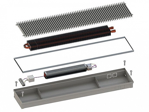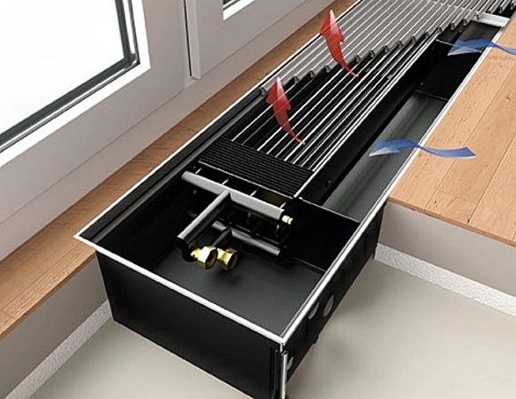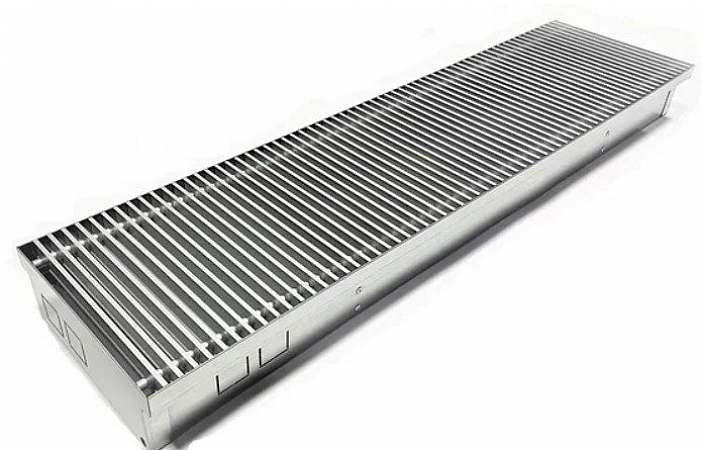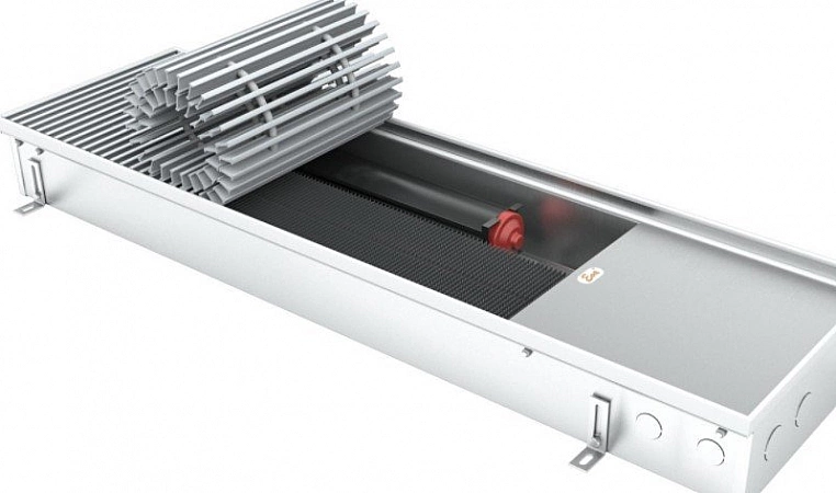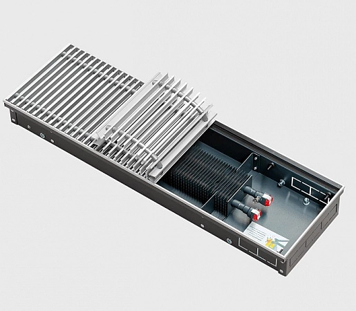 L'appareil au sol fournit un chauffage confortable avec des différences de température minimales sur toute la surface de la pièce. L'air réchauffé lors de son passage dans l'échangeur crée un effet de turbulence et répartit mieux la chaleur. Cela a été rendu possible grâce à la forme unique des lamelles : les plaques ont une surface horizontale ondulée. Une caractéristique distinctive du modèle est le cas d'une température constamment basse - il chauffe jusqu'à un maximum de 40°C, même si l'eau dans le convecteur atteint 90°C. Cette caractéristique fait de l'appareil de chauffage l'un des plus sûrs de sa catégorie, car même en cas de contact prolongé, il n'y a aucun risque de brûlure. C'est pourquoi l'appareil est souvent installé dans les écoles et les jardins d'enfants.