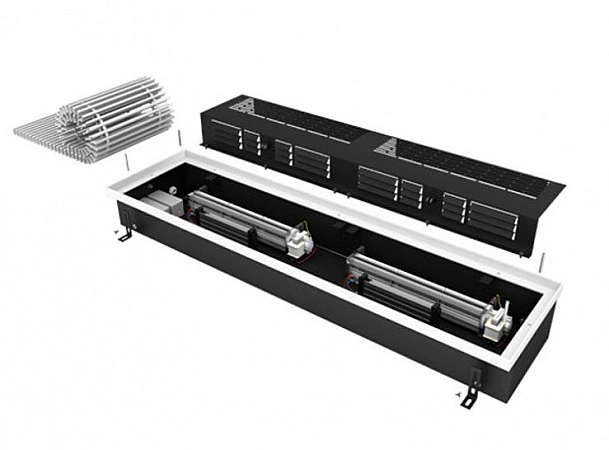 itermic ITTL est une gamme de convecteurs de sol ultra-fins destinés à être installés dans un appui de fenêtre, un plan de travail, une niche ou un sol peu profond. En raison de son faible poids et de sa forme compacte, l'appareil ne crée pas de charge sur la structure murale et peut être monté sur un comptoir ou un rebord de fenêtre. Un autre avantage de ce modèle est la présence d'une niche spéciale pour l'installation d'un ventilateur, qui vous permet de changer le type de convection naturelle à forcée afin d'augmenter l'efficacité du chauffage. En raison du volume d'eau réduit, le convecteur est assez économique en termes de consommation d'électricité. Le caisson en acier de 9 mm d'épaisseur assure la durabilité et la sécurité de la structure.