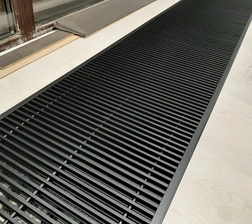 Le convecteur de sol Stout SCN est harmonieux dans tous les intérieurs, car il est proposé de choisir la texture et la couleur de la grille décorative en tenant compte du design de la pièce. L'intérieur du convecteur est peint en noir.