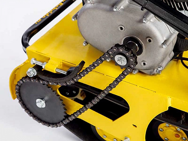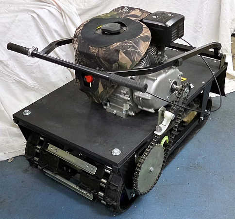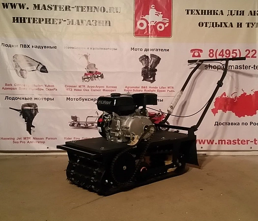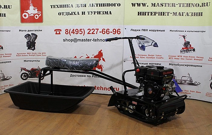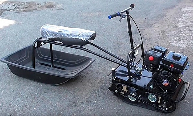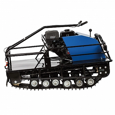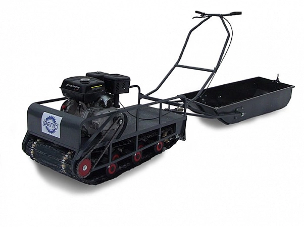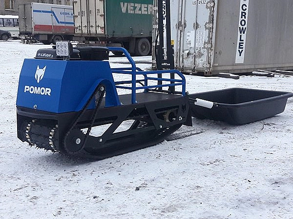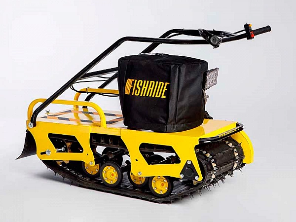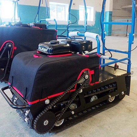 Nous avons devant nous un véhicule tracteur motorisé peu coûteux, en termes de paramètres correspondant à des modèles plus chers. Le moteur Lifan 170 F-R est installé ici, délivrant 7 chevaux. Le traîneau peut transporter jusqu'à 150 kilogrammes et atteindre en même temps des vitesses allant jusqu'à 25 kilomètres à l'heure. Le modèle utilise une suspension à rouleaux, mais le chien motorisé peut facilement se déplacer dans la neige profonde et lâche. Tout cela grâce à la conception astucieuse des chenilles. Il n'y a pratiquement pas d'espace entre les deux modules, ce qui augmente considérablement la zone de serrage. A noter également le cache moteur, déjà inclus dans le kit et un phare qui peut pivoter à 360 degrés. En termes simples, c'est le meilleur modèle pour votre argent.