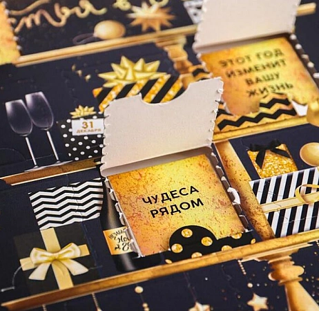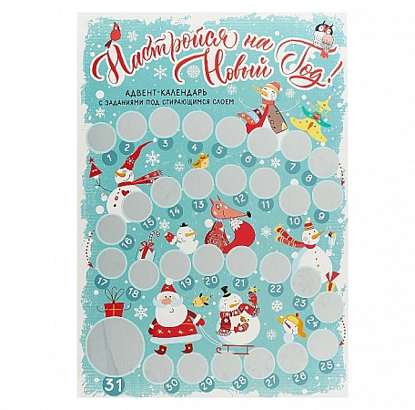 Ce calendrier est une sorte de loterie, vous ne savez jamais quelle tâche vous attend aujourd'hui. Et pour le savoir, vous devez effacer la couche protectrice du cercle. Les tâches sont sérieuses, donc le calendrier convient même aux adultes.