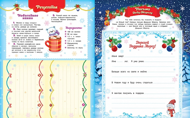 En plus du calendrier de l'Avent lui-même, l'ensemble comprend un formulaire de lettre pour écrire au Père Noël, des dépliants avec des recettes pour les bonbons du Nouvel An. Et, bien sûr, de nombreuses tâches intéressantes !