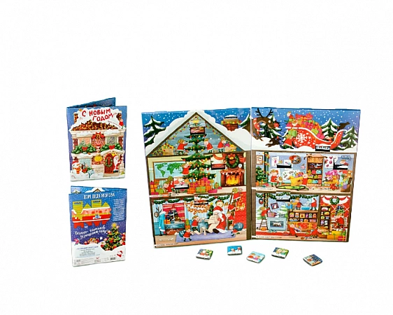 Le calendrier de l'Avent ravira les enfants et leurs parents avec une histoire intéressante. C'est une maison pliante du Père Noël, où les dessins montrent comment il se prépare pour les vacances, lit les lettres des enfants et collectionne les cadeaux, et les elfes l'aident à cela. L'ensemble comprend également 30 délicieux chocolats et des puzzles intéressants. Avec ce calendrier de l'avent, attendre le Nouvel An sera plus amusant pour les enfants, plein d'émotions lumineuses. Les tâches sont simples, plus adaptées aux petits enfants, elles aideront à former l'attention et la mémoire. Par exemple, vous devez compter combien de gnomes décorent le sapin de Noël. Pour un enfant d'âge préscolaire (jusqu'à 6-7 ans), ce calendrier de l'avent sera un excellent cadeau.