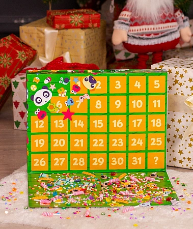Ce n'est pas un calendrier de l'avent ordinaire, tout le monde ne l'aimera pas. La particularité réside dans le fait que dans chaque cellule il n'y a pas une douceur et une tâche à accomplir, mais un décor différent pour les slimes (lizuns). Il s'agit de divers saupoudrages, d'étincelles figurées, de neige artificielle et bien plus encore. Sinon, tout est comme d'habitude - 31 cellules pour tout le mois avant le Nouvel An. Un enfant peut ouvrir une fenêtre par jour et s'amuser à décorer son slime avec de nouveaux éléments décoratifs. Ce calendrier de l'avent est un excellent cadeau pour les enfants dont les parents les laissent jouer avec de la boue. Les adolescents pourraient aussi aimer.
