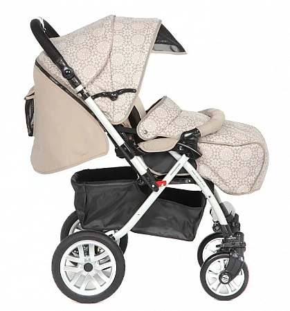 Le modèle justifie pleinement son nom grâce à un design bien pensé.Il est chaud grâce à une double couche d'isolation dans la cape sur les jambes, un capot profond jusqu'au pare-chocs même et est tout à fait praticable à l'aide de roues de diamètre solide.