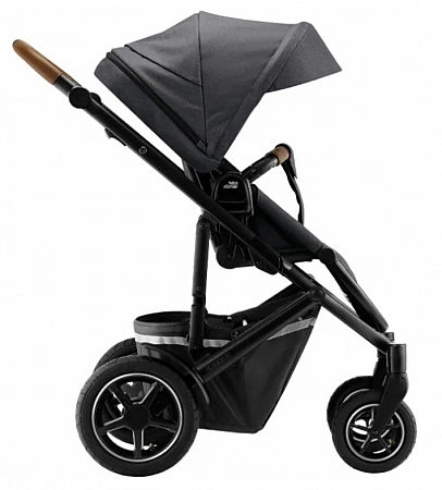 Les poussettes allemandes Britax sont de véritables véhicules tout-terrain, et le modèle de marche Romer Smile 3 ne fait pas exception. "Troïka" est une version améliorée du précédent Smile 2, conçu spécifiquement pour les routes difficiles.Le module de course a une suspension améliorée et est équipé de grandes roues: le diamètre avant est de 20 cm et l'arrière de 29 cm.Ils sont gonflables et en caoutchouc de première qualité, ce qui signifie qu'il est presque impossible de les percer - ils peut même résister aux collisions avec une croûte de glace gelée sur la neige. Dans le même temps, le châssis de 57 cm en fait un choix attrayant pour une utilisation urbaine, car il surmonte facilement les allées étroites, s'intègre dans les ascenseurs et passe entre les voitures en stationnement.