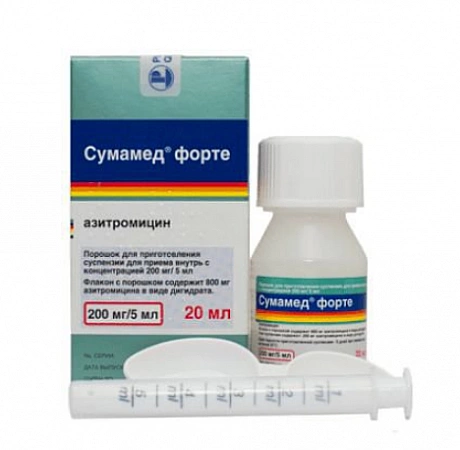 Sumamed Forte est disponible sous forme de suspension. Son principal ingrédient actif est l'azithromycine. Les comprimés contenant le même ingrédient actif sont beaucoup moins chers, mais de nombreux médecins, lorsqu'ils choisissent entre ces deux médicaments, s'arrêtent souvent à la suspension, car ils la considèrent plus efficace et plus douce en termes d'effets secondaires. L'outil se distingue également par le fait qu'il est pratique à doser. Pour cette raison, il est souvent prescrit aux enfants. Sumamed s'est avéré excellent dans le traitement de l'amygdalite chez l'adulte. De plus, il peut être utilisé dans les formes chroniques et aiguës. Il est pratique de le prendre - une seule fois par jour et l'effet apparaît assez rapidement.