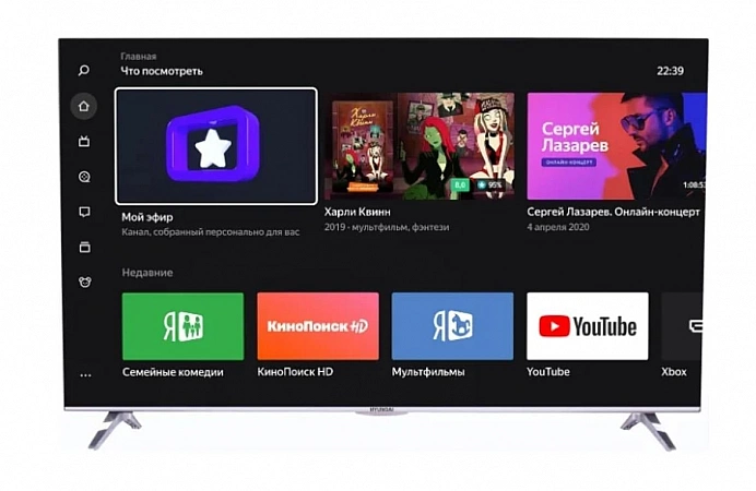 Un bon petit téléviseur, qui est souvent acheté pour la maison : par exemple, pour la cuisine. De plus, ce modèle est acheté pour donner, car il est budgétaire et il y a suffisamment de fonctionnalités. L'appareil n'est pas trop mince, mais il a fière allure. Résolution HD : À 32 pouces, l'image semble monolithique et il n'y a pas de problèmes sérieux de qualité d'image. Smart TV a déjà une Alice intégrée, et il est plus pratique de contrôler le téléviseur avec : vous pouvez non seulement nommer une requête de recherche sur YouTube avec votre voix, mais aussi vous dire de quelle chaîne de télévision vous avez besoin (fonctionne parmi Yandex. canaux éther). Mais ce modèle de téléviseur ne peut pas être qualifié d'idéal : il existe un module Bluetooth, mais la connexion d'un casque ou de toute autre chose à travers celui-ci est problématique. Cependant, les fonctions principales fonctionnent correctement.