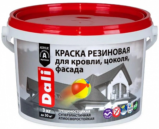 La peinture au caoutchouc DALI est idéale pour la finition des toits, des plinthes et des façades, ainsi que pour la décoration des murs et des plafonds dans les pièces sèches et humides. Il adhère bien au bois non préparé et au béton. En raison de sa consistance optimale, il ne forme pas de traînées et masque les défauts mineurs de la base. Il a un excellent pouvoir couvrant et une seule couche suffit souvent pour obtenir une couleur riche. Le mélange est résistant aux précipitations et aux contraintes mécaniques, nécessite cependant le respect des subtilités technologiques. Cela est particulièrement vrai lorsqu'il est appliqué sur un toit en métal, qui doit d'abord être soigneusement apprêté.