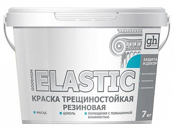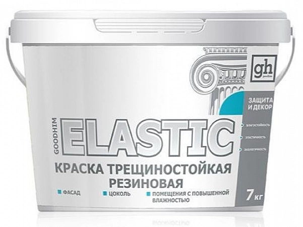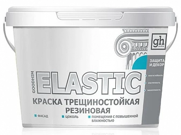 Goodhim "ELASTIC" a une excellente élasticité et résistance à l'eau. Ne passe pas l'eau, n'a pas peur du lavage. En même temps, il n'obstrue pas étroitement les murs et n'interfère pas avec l'air, mais permet à la base de «respirer». Il est utilisé pour la décoration intérieure dans les pièces sèches et humides, ainsi que pour les travaux extérieurs sur les façades, les toits et les plinthes. Masque les défauts mineurs et forme un revêtement uniforme à partir duquel, si nécessaire, il est facile de laver toute saleté. À en juger par les critiques, il est assez stable et n'a pas peur des dommages mécaniques. Cependant, il n'est pas conçu pour une charge constante et n'est pas adapté aux ateliers industriels.