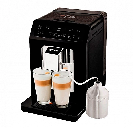 La cafetière au bureau doit être la plus autonome et la plus durable possible. La machine à café en grains Krups répond à ces exigences. Toutes les opérations sont effectuées en appuyant sur un bouton sur l'écran : de la préparation du café selon l'une des 15 recettes au nettoyage de l'appareil avec une pastille spéciale. En général, la machine est très facile à utiliser et à entretenir. Mais cela ne s'applique pas au cappuccinatore. Le tube et le tuyau doivent être lavés sous le robinet après chaque préparation d'une friandise avec du lait, sinon l'appareil cessera de la faire mousser. Un robinet au bureau est une rareté, encore faut-il y accéder. Ainsi, si les employés aiment le cappuccino, il est toujours préférable de choisir un autre modèle.