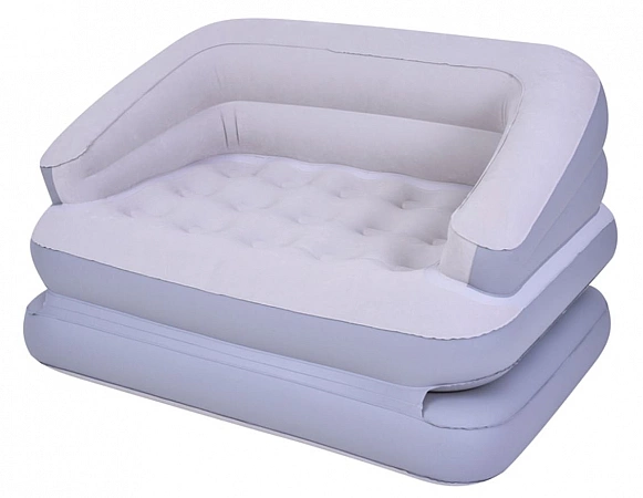 L'un des meilleurs canapés gonflables pour l'argent sous la forme d'un transformateur. Il se transforme facilement en lit double et dossier. La surface avant est recouverte de textiles, grâce auxquels la feuille ne roule pas. Les accoudoirs ont un porte-gobelet. Le kit comprend un patch autocollant en cas de trou. Le matelas pneumatique diffère par ses dimensions pratiques, mais en raison de la faiblesse de sa coque, il devient rapidement inutilisable. Les critiques suggèrent que même avec une utilisation prudente, des micro-trous peuvent bientôt apparaître. Ils forment eux-mêmes des plis. Les cavaliers peuvent également éclater, puis une bosse est obtenue, ce qui rend la surface du matelas inégale.