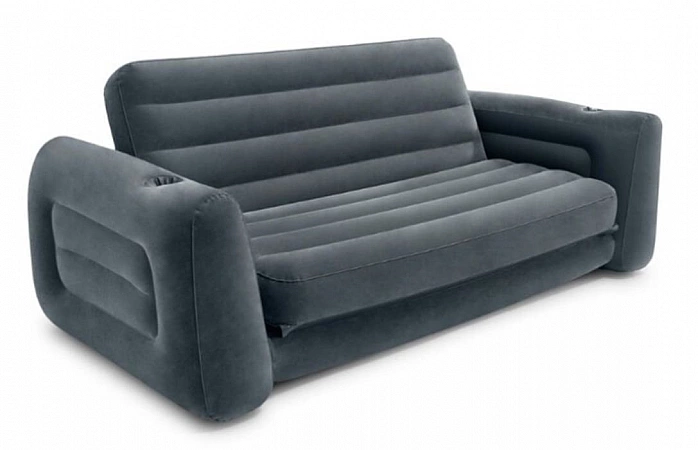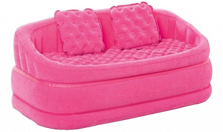 Grand canapé gonflable pas cher. Il se transforme en lit double, et lorsqu'il est dégonflé, il prend peu de place, il est donc idéal pour voyager ensemble en voiture.Il y a des sous-verres intégrés, mais les propriétaires dans les critiques notent qu'ils conviennent à peine à un verre de taille standard. La matière est assez dense, avec un revêtement floqué. Le principal problème de ce modèle est la fragilité des membranes. Après un mois d'utilisation, le cavalier interne peut éclater, puis dormir sur le lit et s'asseoir sur le canapé ne sera pas aussi confortable.