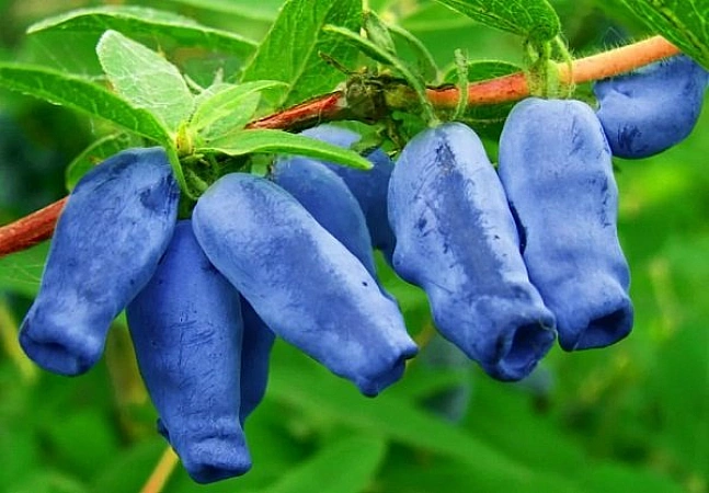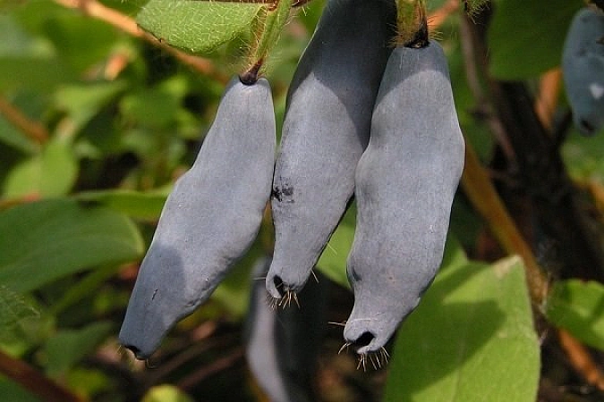 Le fuseau Honeysuckle Blue est apprécié pour sa taille relativement compacte d'arbustes qui ne prennent pas beaucoup de place sur le site, ainsi que pour sa résistance aux conditions météorologiques les plus difficiles. La variété n'a pas peur des gelées jusqu'à 40 degrés, elle tolère parfaitement la sécheresse, ce qui lui permet d'être plantée même dans des conditions sibériennes. Il tire son nom de la forme allongée des baies, d'un poids de 1 à 1,5 gramme et d'une longueur de 2,5 cm.Le goût du fruit dépend en grande partie du temps qu'il fait - en cas de sécheresse, il a une légère amertume, et quand le sol est gorgé d'eau - fraîcheur. La variété est auto-infertile, c'est-à-dire que pour obtenir une récolte, il est nécessaire d'avoir un certain nombre d'arbustes avec une période de floraison similaire. La maturation se produit progressivement, par conséquent, afin d'éviter de tomber, il est recommandé de les cueillir tous les deux jours.