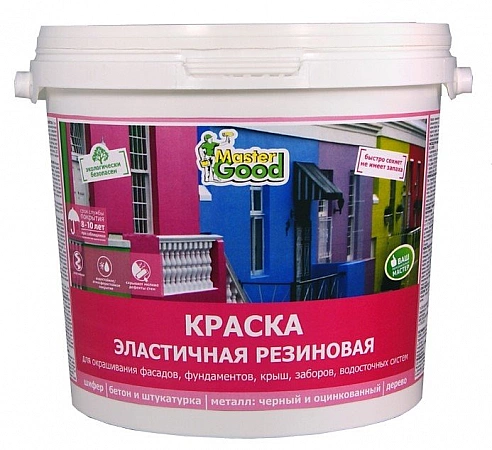 La peinture pour métaux la plus économique de toutes, la peinture MasterGood est vendue prête à l'emploi. Il est appliqué sur n'importe quelle surface de toutes les manières possibles. Il est à base d'eau, de mastic, de latex, de pigment et d'antiseptique. Comparé à d'autres peintures à base d'eau, il offre un revêtement plus résistant, plus élastique et durable qui masque les fissures et autres défauts, protège contre l'eau, la vapeur et les rayons UV. Mais la composition ne peut pas être qualifiée de résistante à l'usure, le fabricant ne recommande pas de l'appliquer sur des surfaces fortement chargées. Si le métal ou le béton est peint, ils doivent d'abord être apprêtés, sinon la consommation augmentera considérablement et la rouille apparaîtra rapidement dans les anciens endroits.